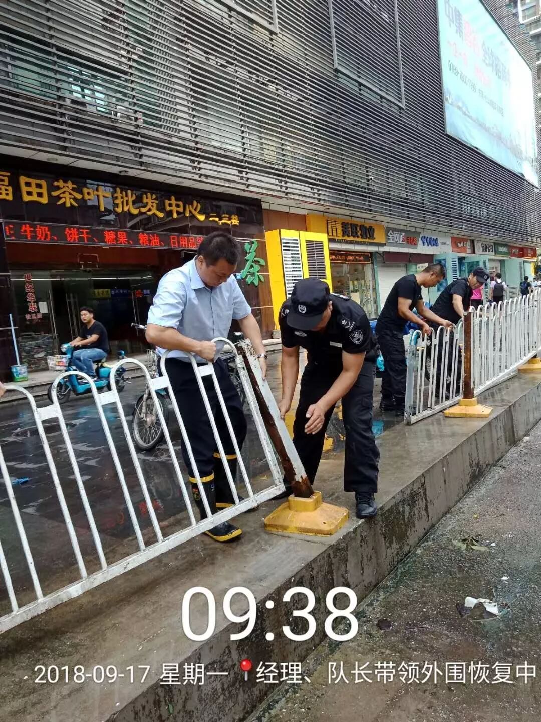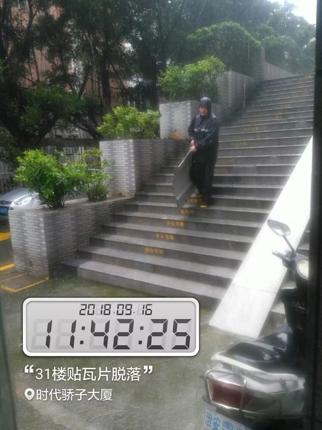 ? ?台风来临,彩福大厦区域物业管理处所有工作人员按照事先制定好的应急预案启动工作,抗台防汛小组立即到位、应急抢险工作即刻执行。