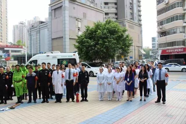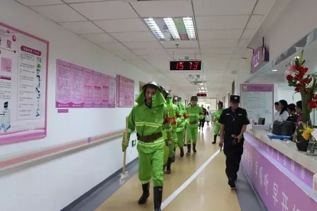 ? ? ? ? 2018年4月28日15:00,由福田物业驻福田区妇幼保健院物业管理处夏昌俊经理组成的志愿消防队整齐划一的在住院部门口集结,到达现场的还有陈渊青院长、张烨副院长、肖敏副院长、李志勇副院长、钱自亮副院长、福强所消防巡查组组长李新亮、海滨工作站站长李聪贤、副站长易德云、及各科室主任和护士长组成的观摩队伍。