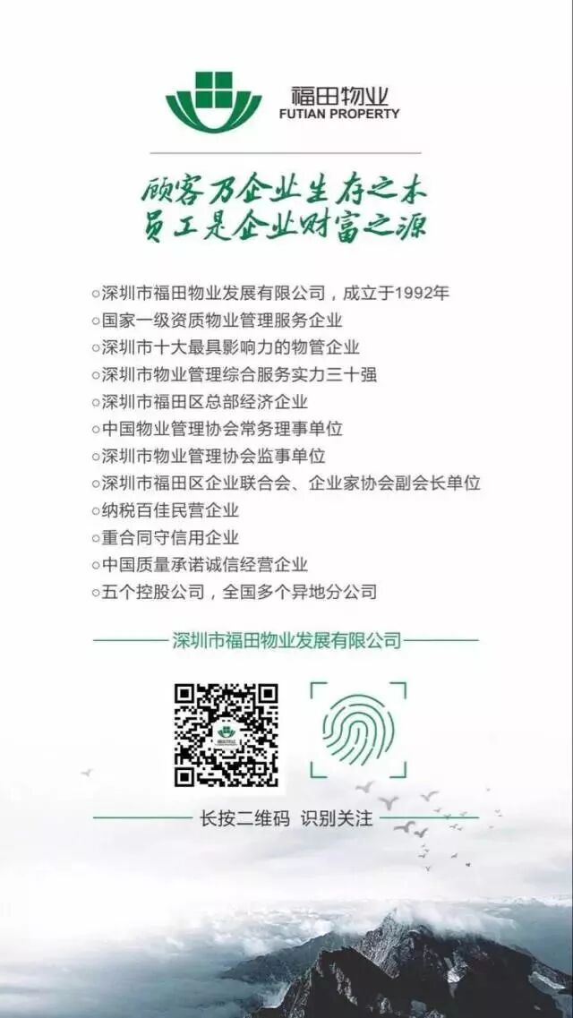 未来,福田物业也将本着“标准化的精致管理,亲情化的体贴服务”方针,不断精益求精服务品质,铸造福田物业的品牌影响力和美誉度,用我们的真诚服务让客户更加满意!