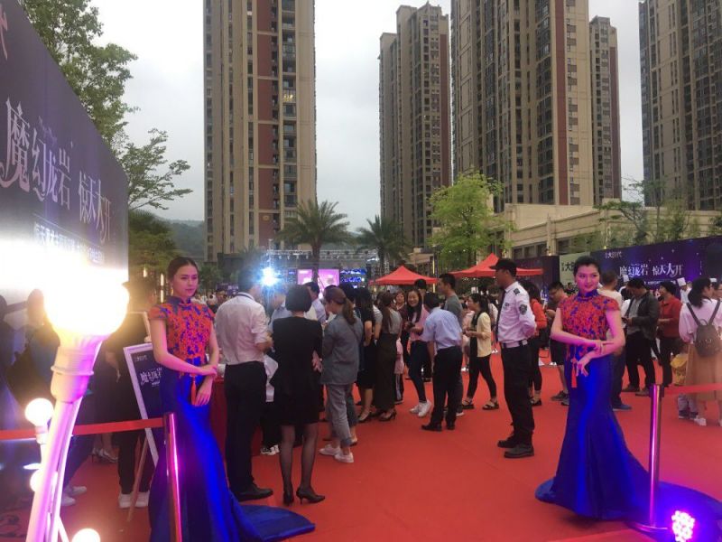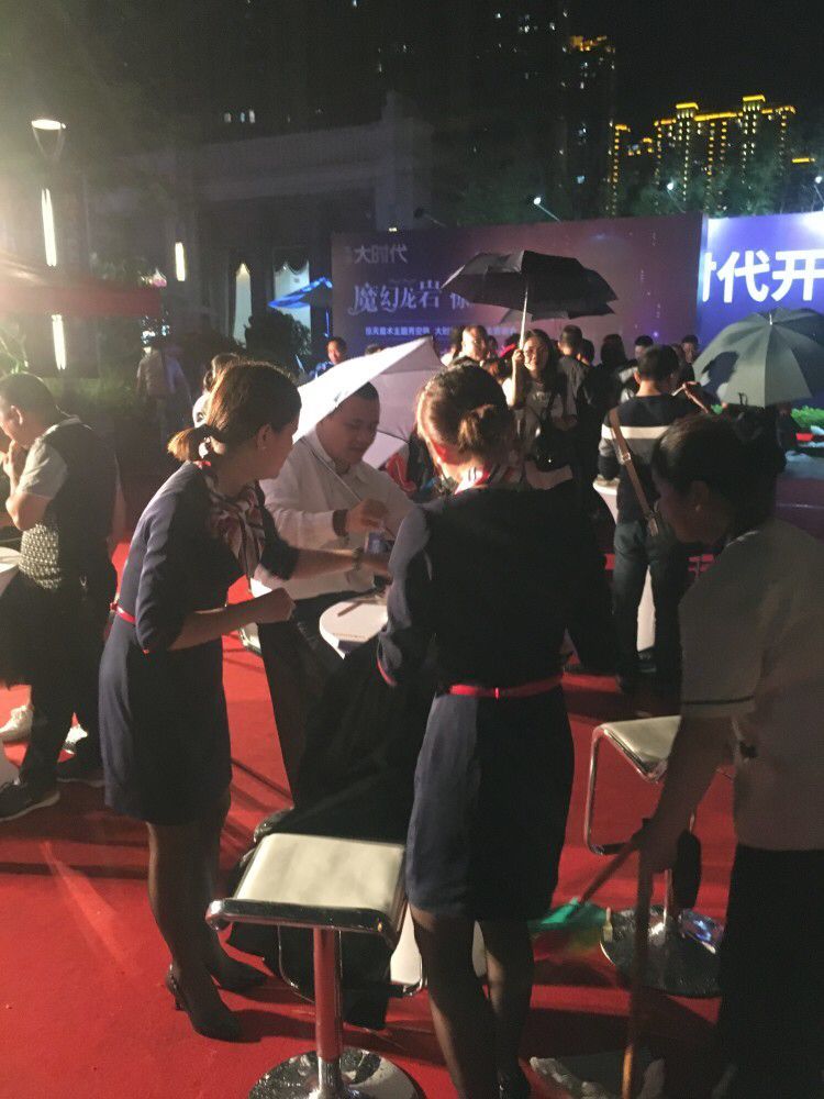 ? ? ? ? 活动开始不久,现场突下大雨,让所有参加活动的业主们猝不及防。雨势挡不住业主的热势。我们的小伙伴们及时递上暖心大雨伞,晚会如火如荼。营销中心内外人潮涌动,歌声、雨声、掌声、人潮声、声声如潮,此起彼伏,仿佛这场大雨是为今晚的活动来喝彩助威。
